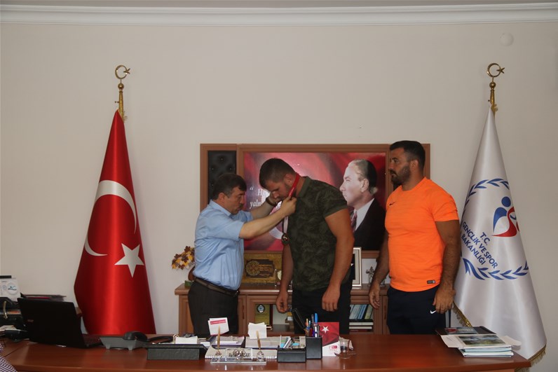 Ayağının tozuyla İl Müdürümüzü ziyarete gelen Semih Turgut beraberinde Burak Kaya ve Ayhan Balıkçı da yer aldı.